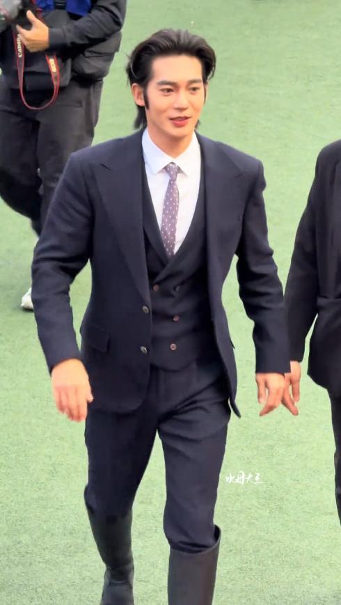 之前出席戛纳电影节,他身着黑色西服套装,遵循正式礼仪,胸前的高定胸针点睛,将东方男性的儒雅与绅士感展现得淋漓尽致。